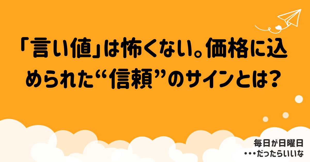 ビジネスの現場では、「言い値=自信の表現」です。自分のスキル・経験・品質に対して自信を持ち、その価値を正しく提示することが、結果的に信頼を生む行為となります。