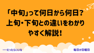 日常生活 「中旬」って何日から何日?上旬・下旬との違いをわかりやすく解説! 「中旬」はいつからいつまで?本記事では、11日〜20日という定義から「中旬発送」「中旬以降」などの使い方、9月・2月・8月の具体例、ビジネスでの表現方法まで詳しく解説します。 日常生活