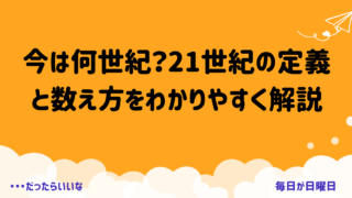 日常生活 「今は何世紀?」21世紀の特徴・出来事・未来予測を徹底解説 「今は何世紀?」の答えは21世紀。2001年から2100年までの100年間を指します。本記事では、世紀の数え方、20世紀との違い、21世紀の出来事や22世紀の始まりまでをわかりやすく解説します。 日常生活